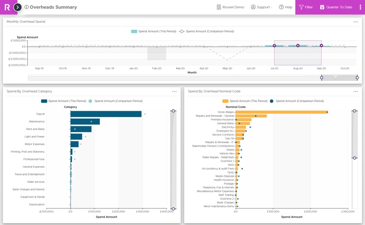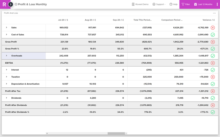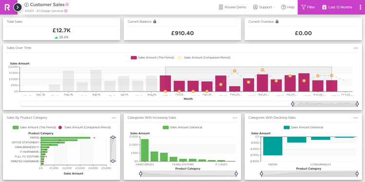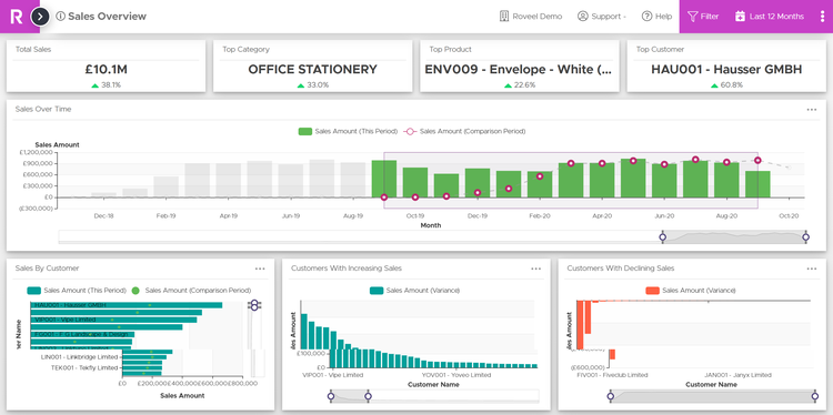 Roveel empowers SMEs and Accountants with the accessible and accurate dashboards they need to analyse their Sage 50 and Sage Accounting data. No need for numerous clunky spreadsheets, Roveel's dashboards extract and transform your Sage data from across your business. From Sales and Credit Control to the Profit and Loss and Cash, have instant visibility over your business performance.