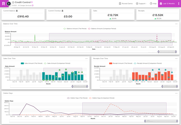 Control which employees can access which dashboards. Let your credit controller have access to only the credit control dashboards and allow your sales teams to see the sales information they require.