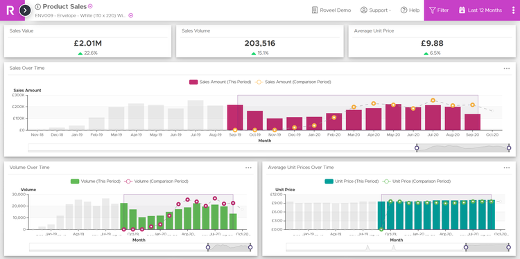 Roveel is easily accessible from any desktop, tablet or mobile from anywhere in the world. Whether you’re on the road with a customer or sitting at home on the sofa, you can access the dashboards from anywhere with an internet connection. show less