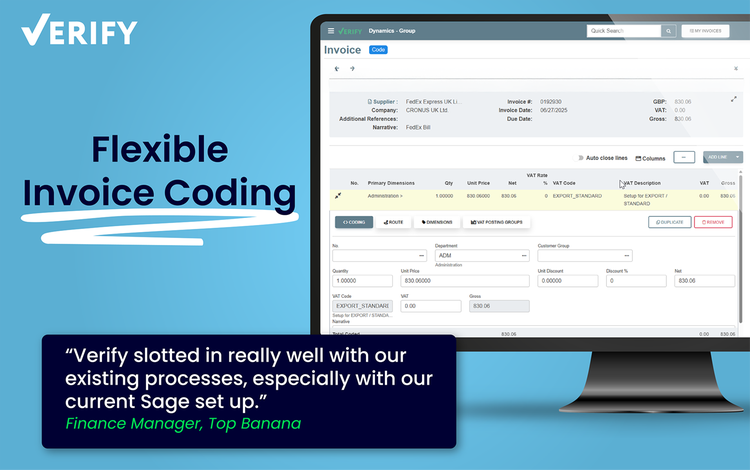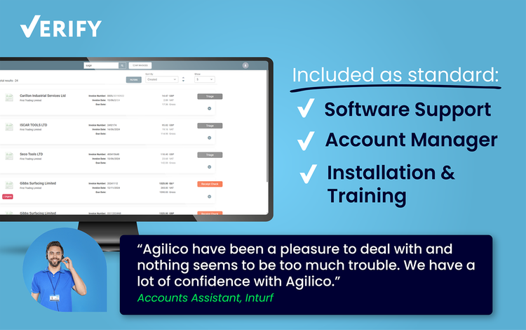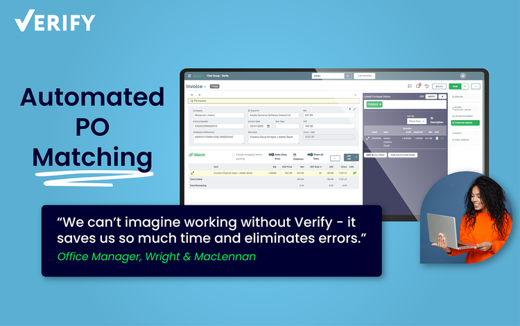 Verify streamlines invoice processing by capturing and matching data automatically. It routes exceptions for approval and ensures the data posted to Sage 50, Sage 200 and Sage Business Cloud Accounting is approved, correct and ready for payment.